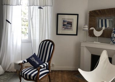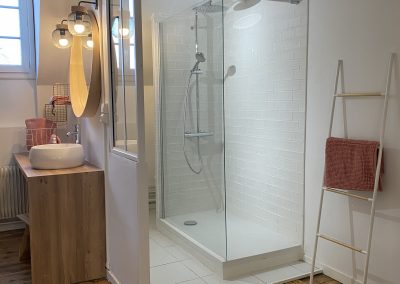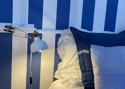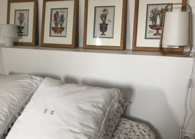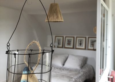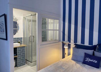 La chambre bleue est spacieuse, lumineuse et pleine du charme de l’ancien .Un lit haut de gamme en 160×190, une petite salle de douche, lavabo et wc complètent celle-ci .