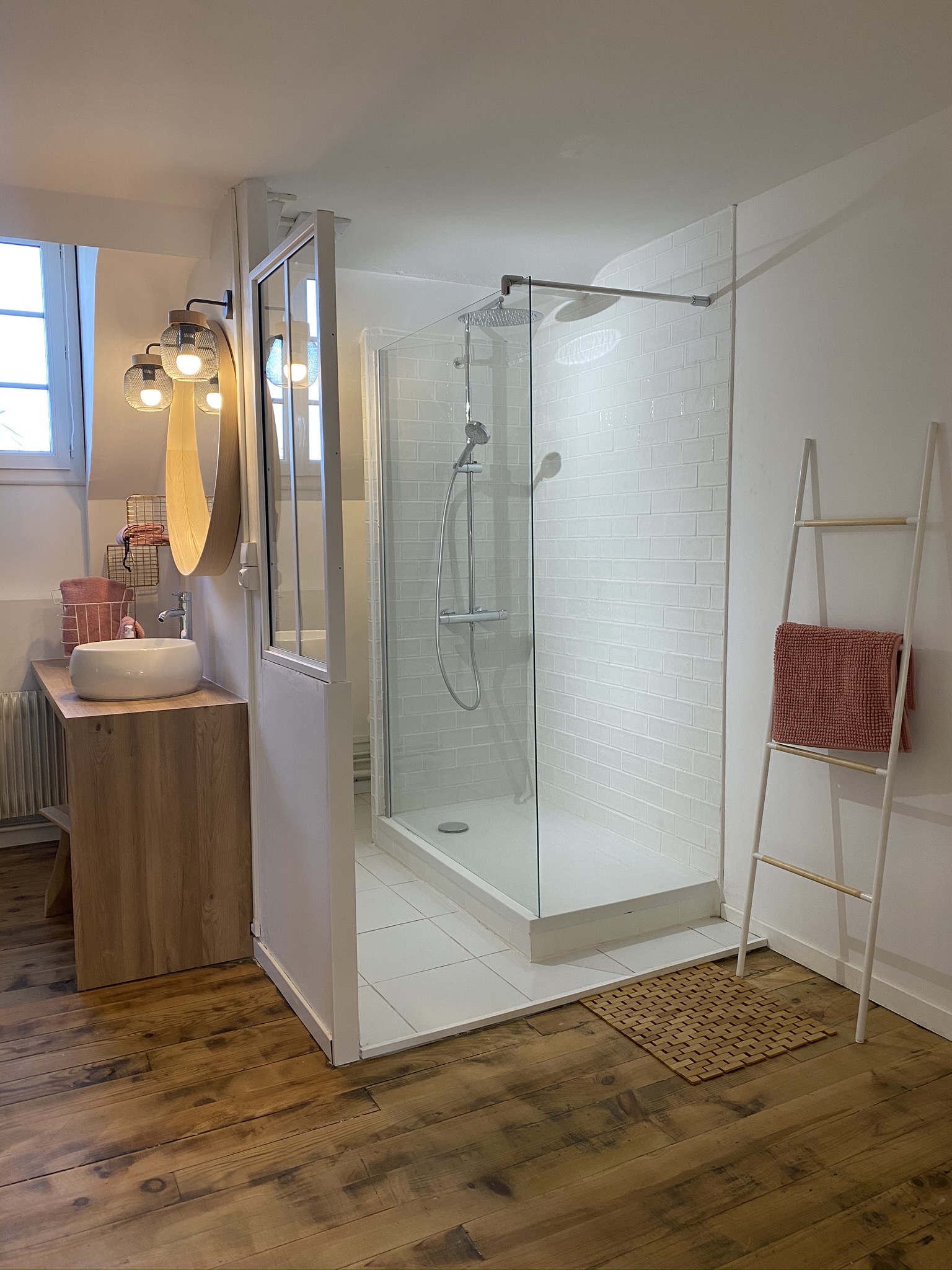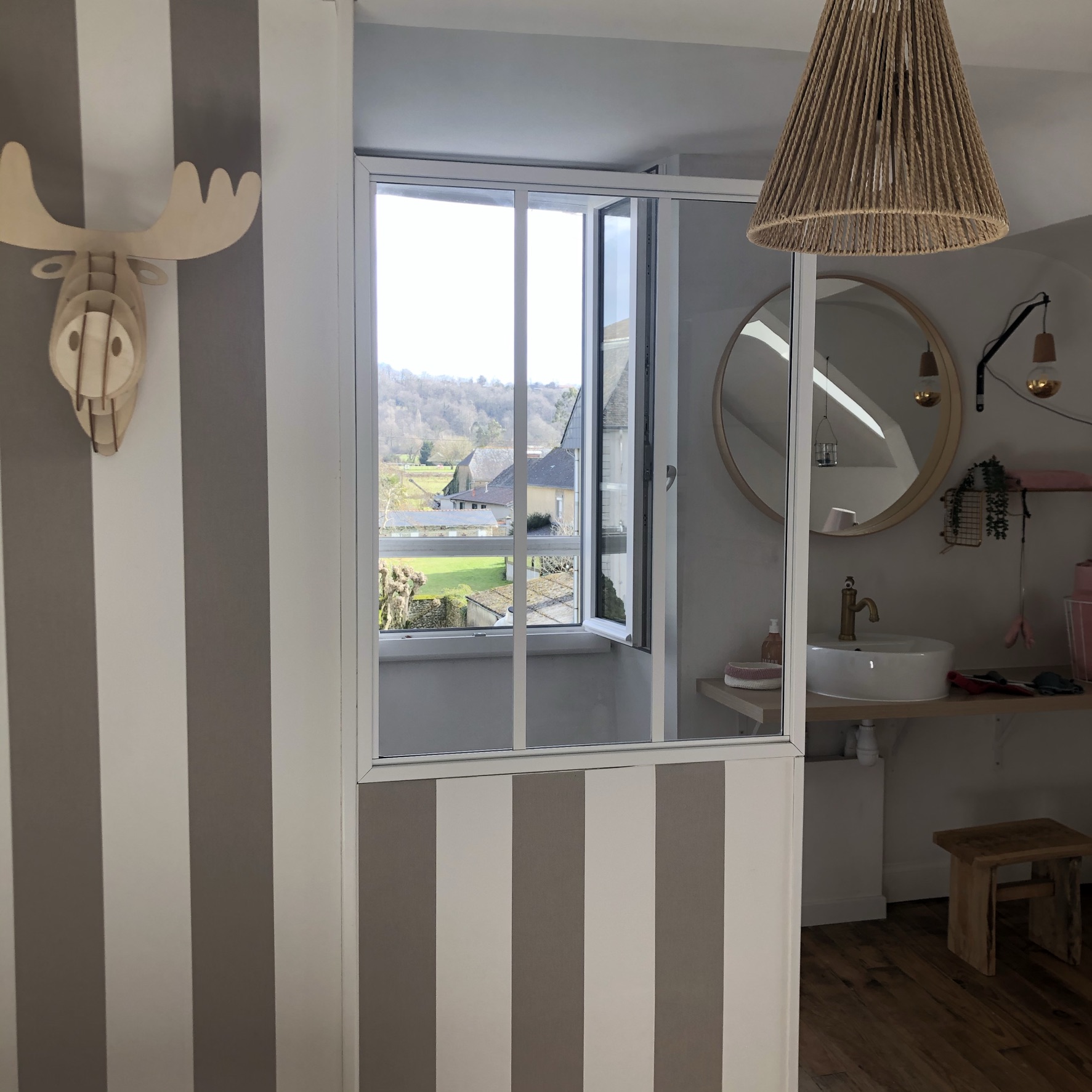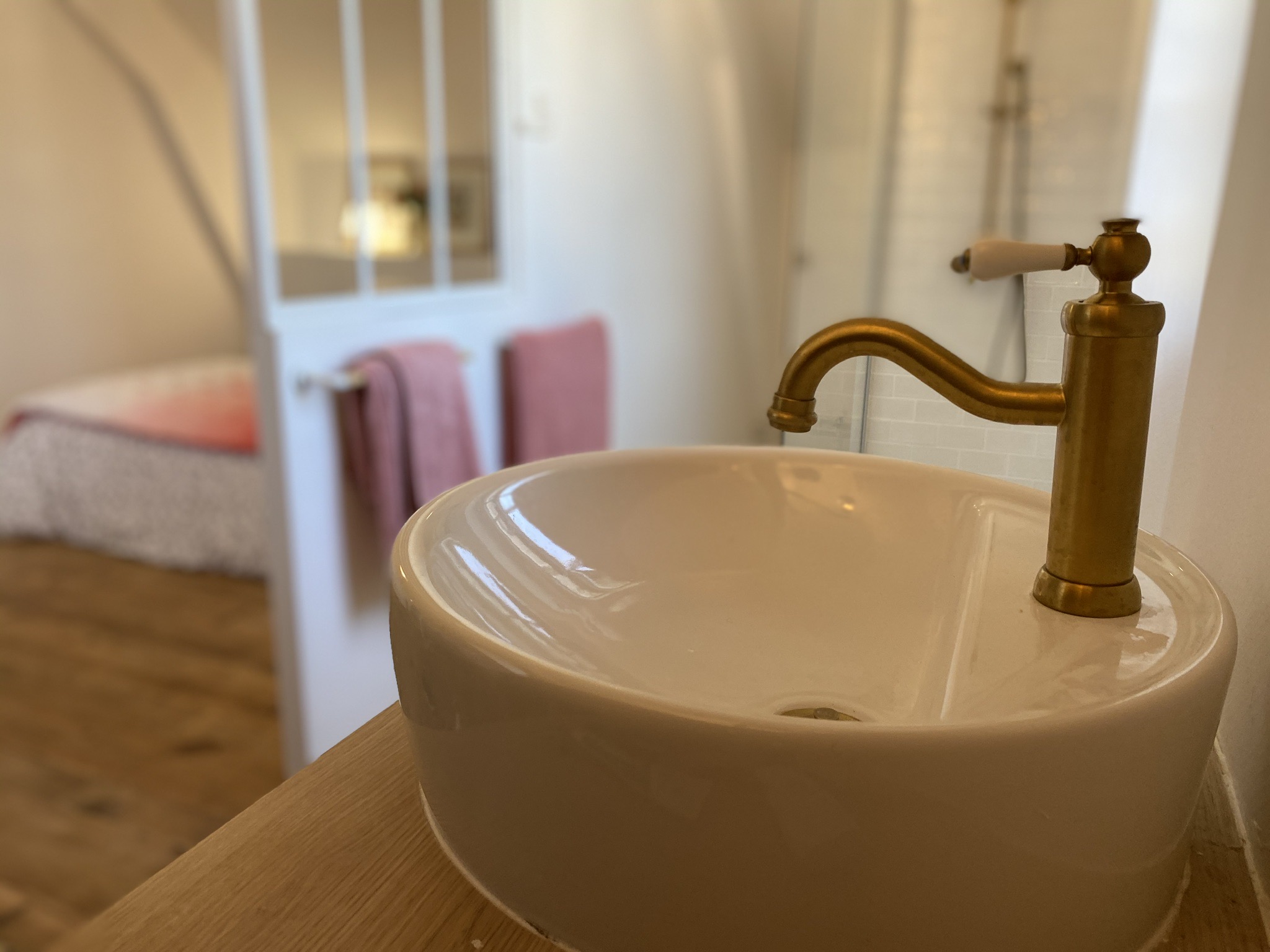 La chambre herbier est une chambre confortable et pleine du charme de l’ancien .Elle dispose de deux fenêtres , un grand lit 160×190, une douche, lavabo et wc .