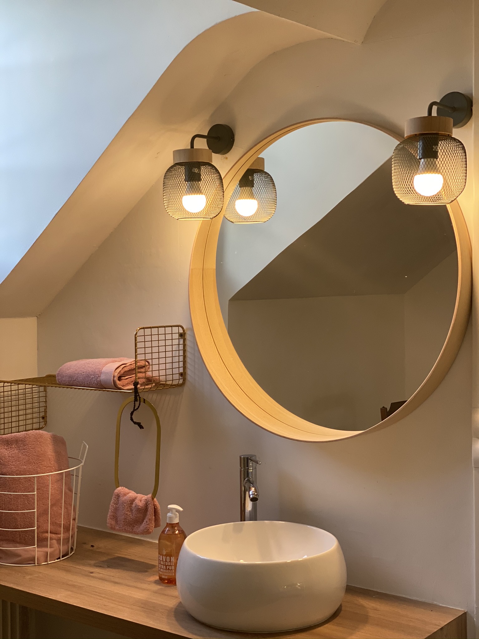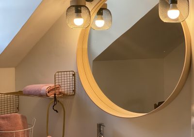 La chambre « seventies » car dotée d’un mur en petits miroirs conservé malgré les réticenses de certains de la famille !